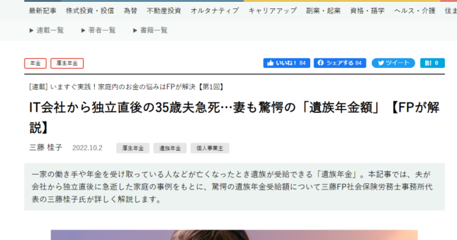 メディア掲載報告です。お金と暮らしを考えるファイナンシャル・フィールドさんにて、記事が掲載されました。今回は保険について、書かせていただきました。