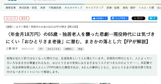 fp SG THE GOLD 60 ねんきん定期便 クレディセゾン セカンドライフ セゾンのくらし大研究 セミナー ファイナンシャル・フィールド フィナシー ワーク教育 一般社団法人人材サービス支援センター 中高齢寡婦加算 保険販売 働き方 働き方改革 働くこと 公的年金 公的給付 加給年金 労働問題 国民年金 在職老齢年金 執筆 寒川町 年金 幻冬舎ゴールドオンライン 暮らし 株式会社セールス手帖社保険FPS研究所 法定講習 派遣元責任者 派遣元責任者講習 監修 社会保険 社会保険労務士 社会保障 経過的加算 老後 老後資金 職業紹介責任者講習 茅ヶ崎市 茅ヶ崎市勤労市民会館 藤沢市 資産形成 資産形成ゴールドオンライン 遺族年金 鎌倉市 障害年金 高年齢雇用継続給付 fp