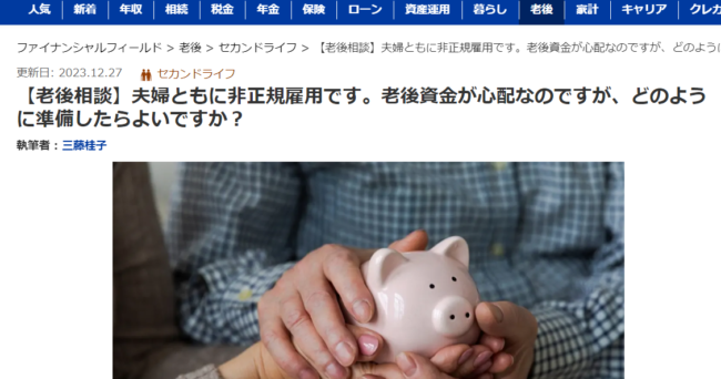 〈年金470万円、退職金4,000万円〉2人とも大企業の60代・社内結婚夫婦、老後も絶対盤石のはずが…定年後、夫だけ「幸せです。」と語るワケ【FPが解説】ついて、ご興味がございましたら、ご一読ください。