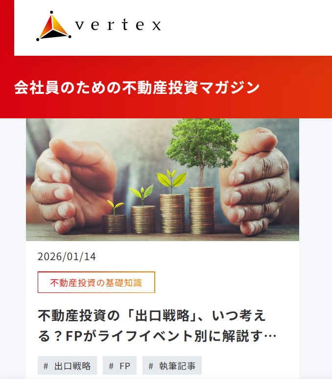 メディア掲載報告です。ご縁をいただき、株式会社ベルテックスさんの「会社員のための不動産投資マガジン」にて、記事が掲載されました。