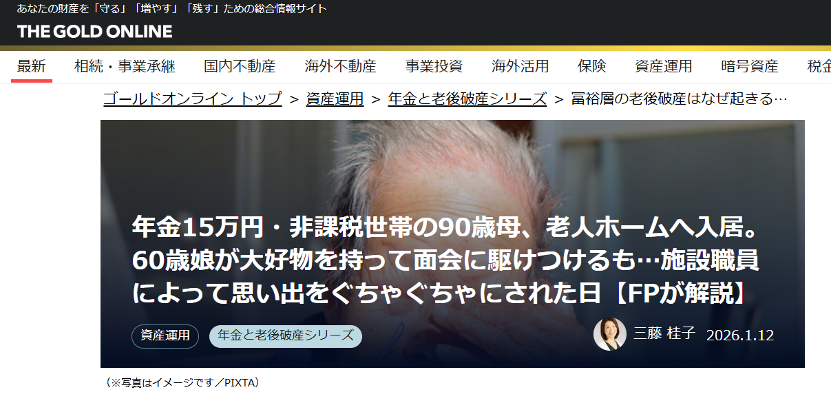 年金15万円・非課税世帯の90歳母、老人ホームへ入居。60歳娘が大好物を持って面会に駆けつけるも…施設職員によって思い出をぐちゃぐちゃにされた日【FPが解説】 について、ご興味がございましたら、ご一読いただけると幸いです。