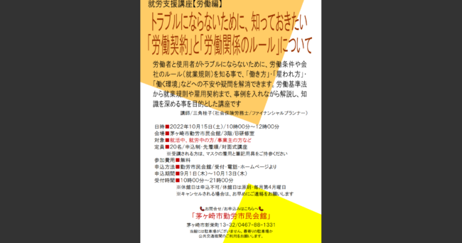 これから社会に出て働く学生さんに向けて、働くに必要な知識をお伝えしました。今は何となくでも、「そういえば、社会保険労務士という資格をもった人がこんなこと話していたな。」「法律によって働くにもルールがある」「困ったときに相談できる」ことを知っていてもらえると、いざという時、心強いですよね!